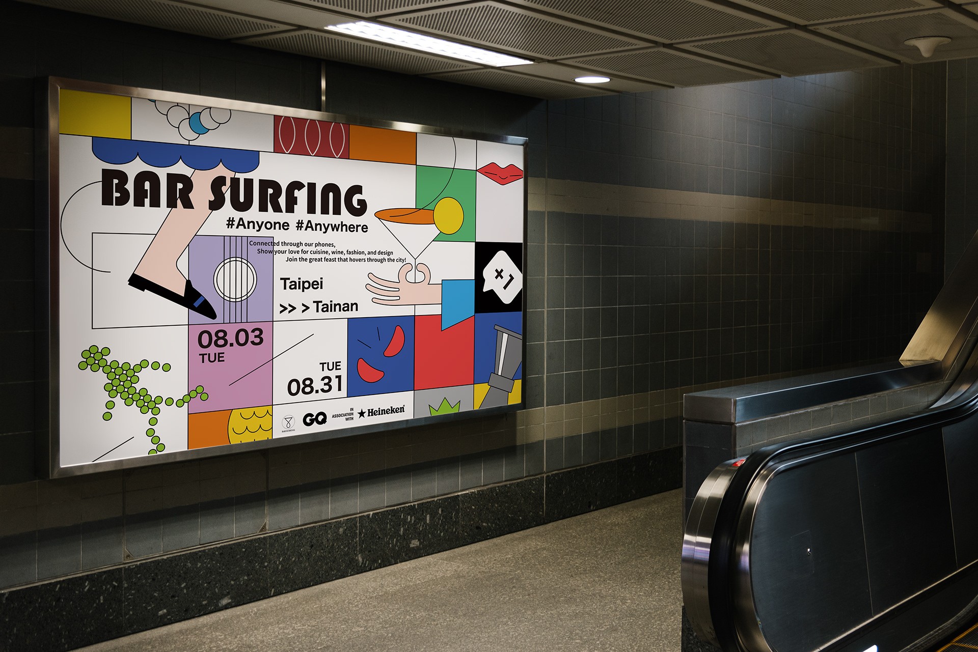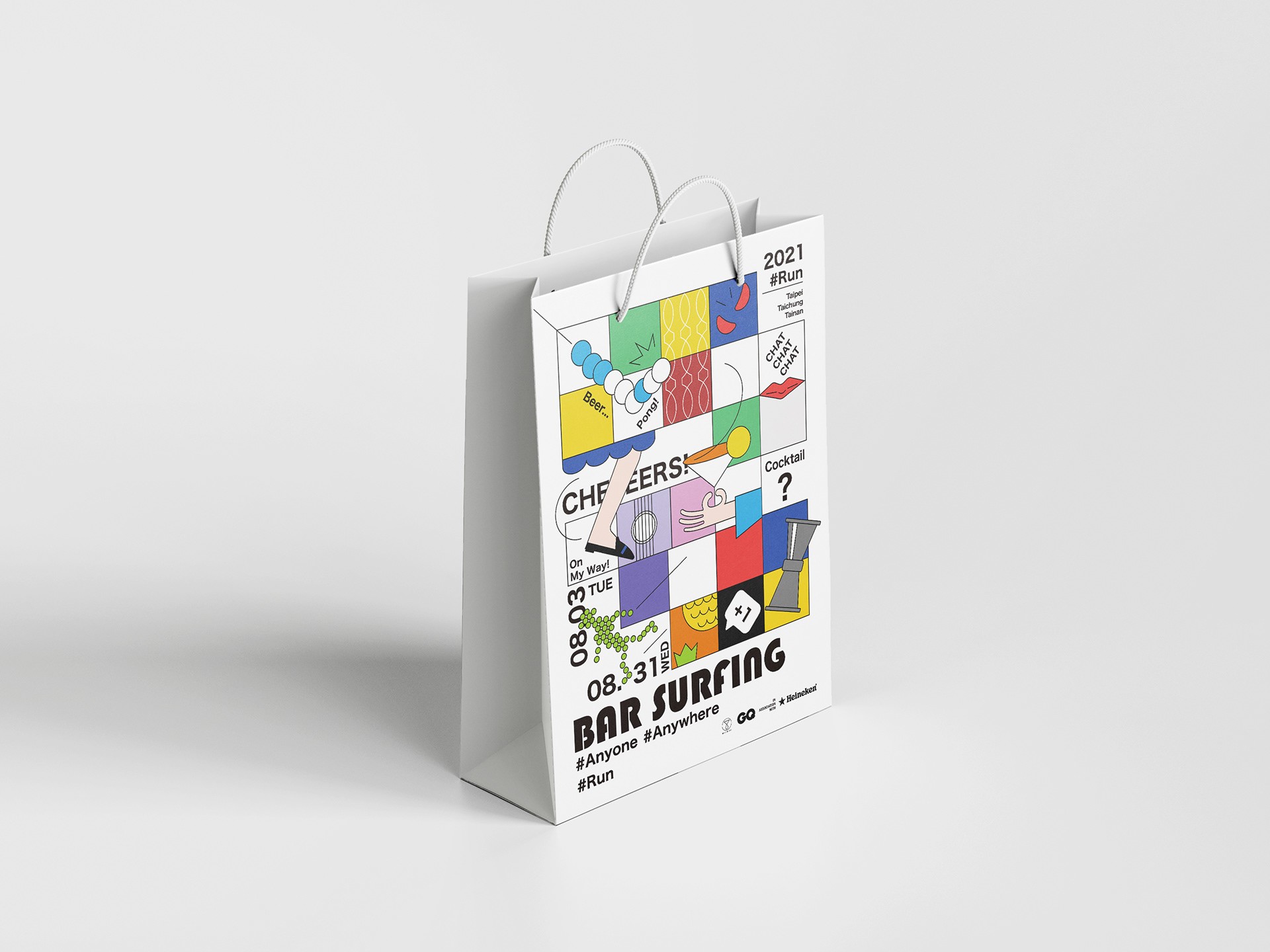 Bringing upon the best quality of an international event, Bar Surfing 2021 still preserves the local Taiwanese culture. With the diverse elements in the design, I strive to present the infinite possibility of the bar culture.