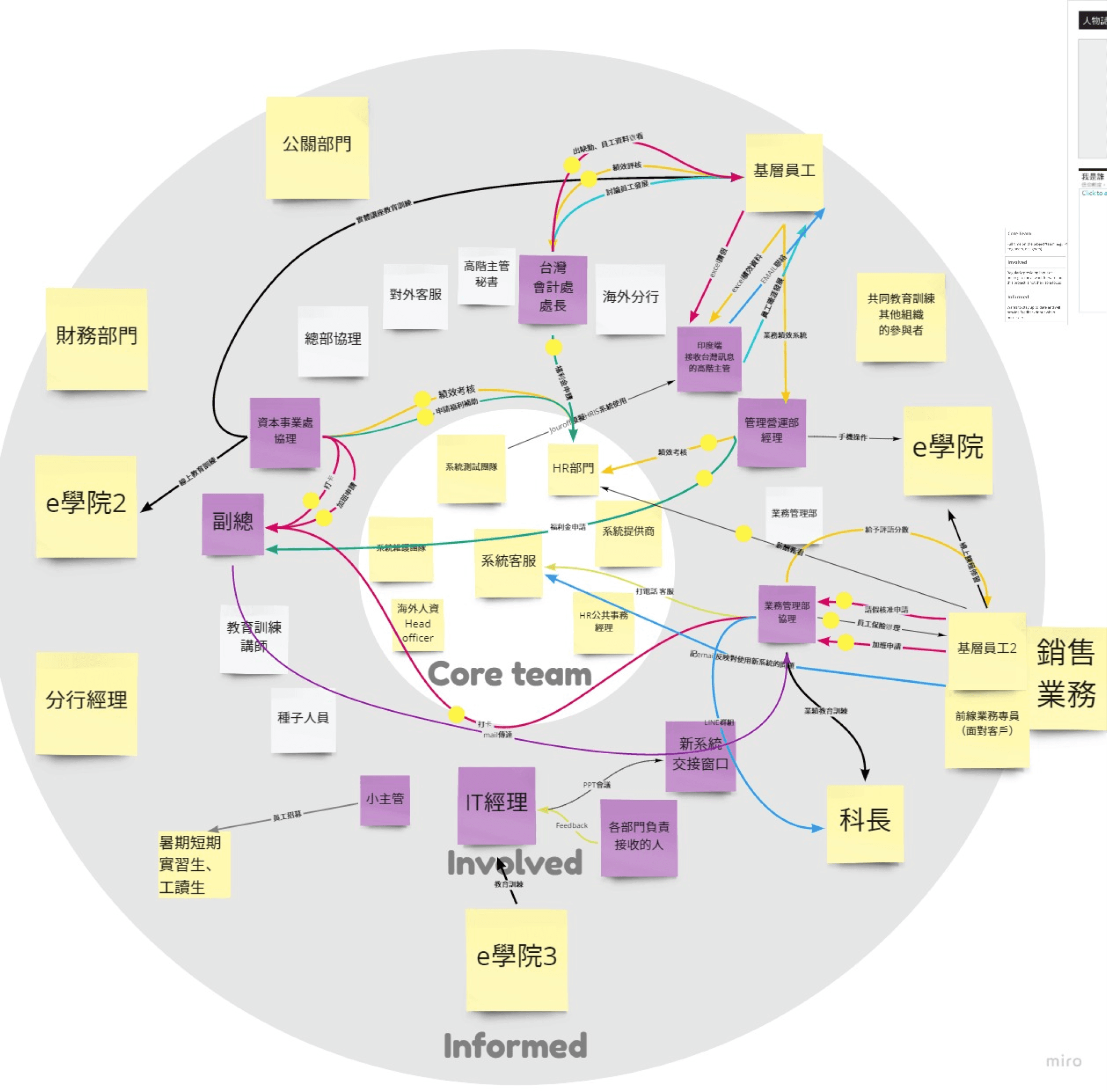 Through stakeholder mapping, we gained a clear understanding of how the system interacts with employees in various positions and work contexts. We identified that seed staffs are crucial connectors between the HR department and general colleagues, serving as a pivotal point for internal marketing of the new HRIS system. Thus, we have defined them as the core user for this service design.