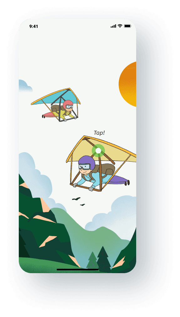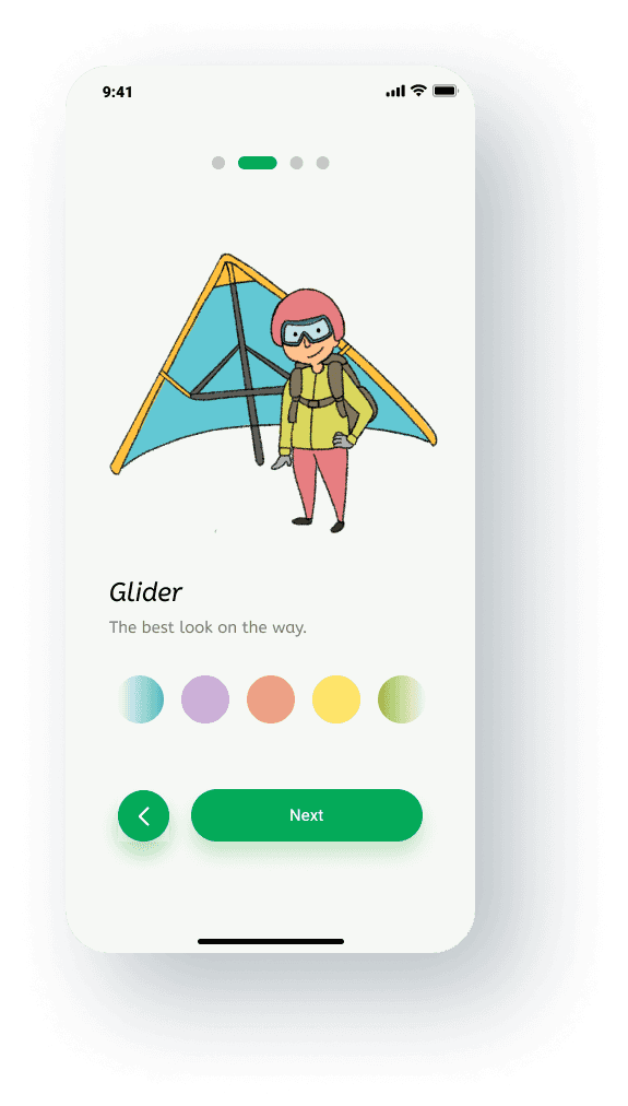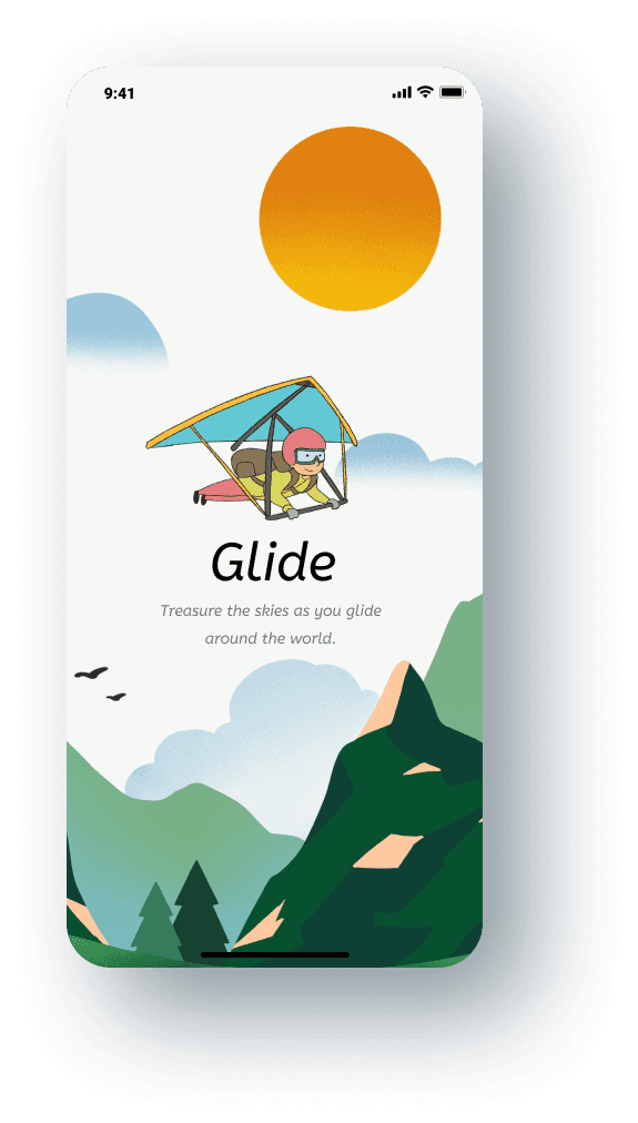 I designed the app’s scenery with a narrative approach, creating a canyon view, combining with the avatar’s attributes of the glider to convey a sense of adventurous freedom. This concept will also be further extended in the future UI design of the app.