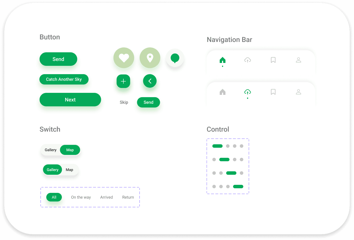 I created a refreshing and energetic UI design pattern and created simple components to comprehend with the theme of the design. Further on implemented to the final prototype to bring out its essence.