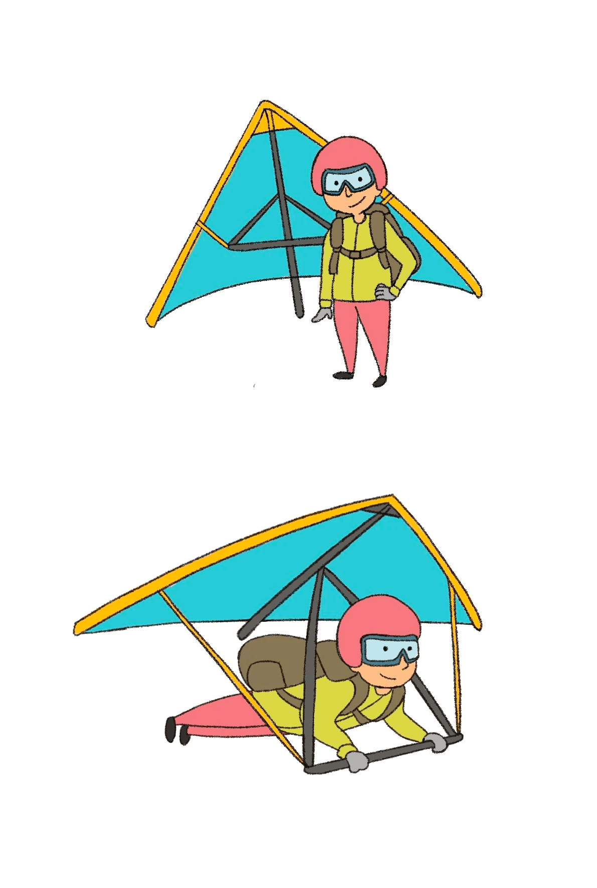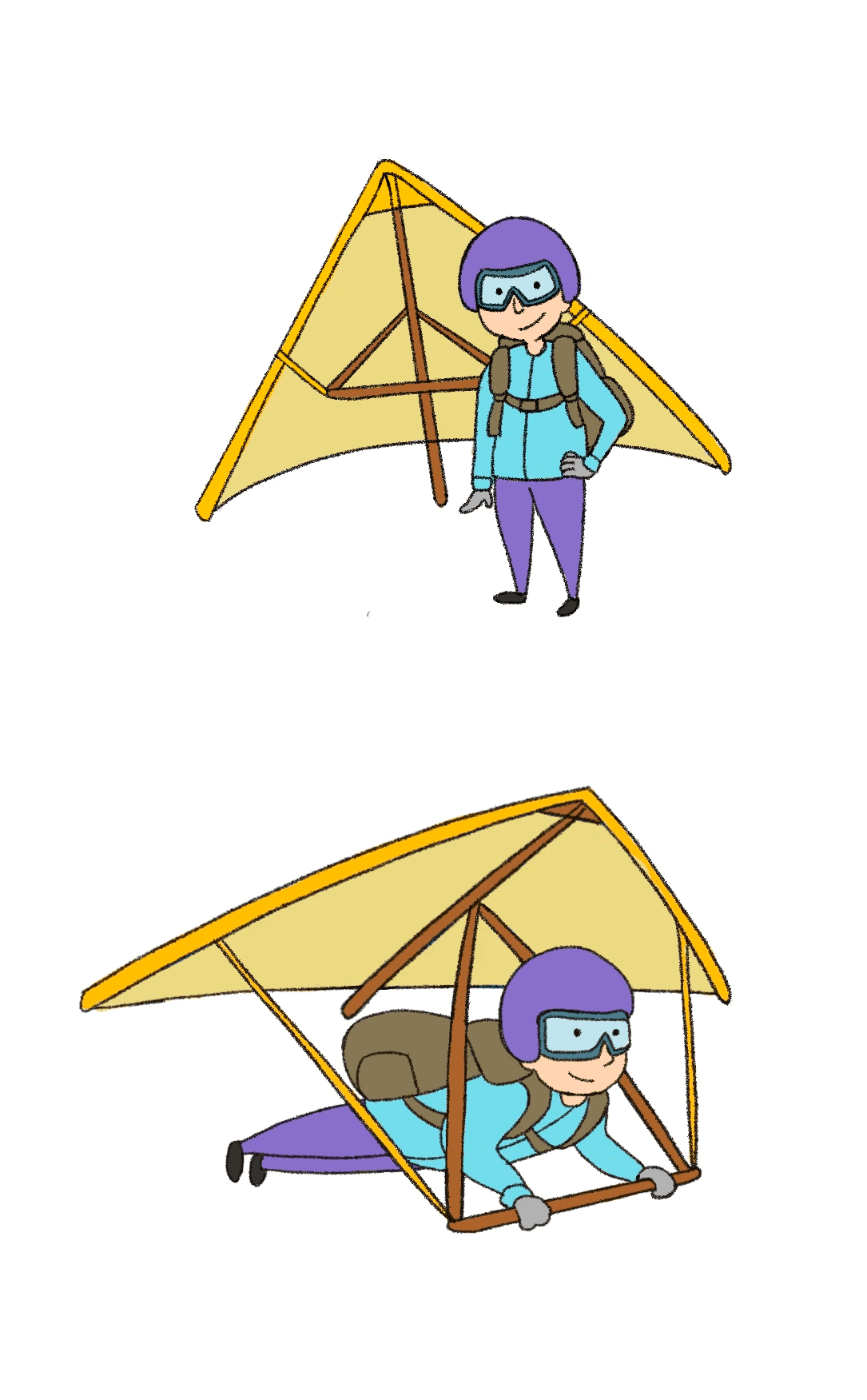 I started sketching out the avatar character representing the users using Procreate, connecting the core values of the app from the user's perspective with elements of the avatar. Even during the pandemic, I wanted to give users a sense of excitement to travel around the world, so I decided to create a glider as the user avatar for Glide, embodying an image of freedom, relaxation, and vitality.