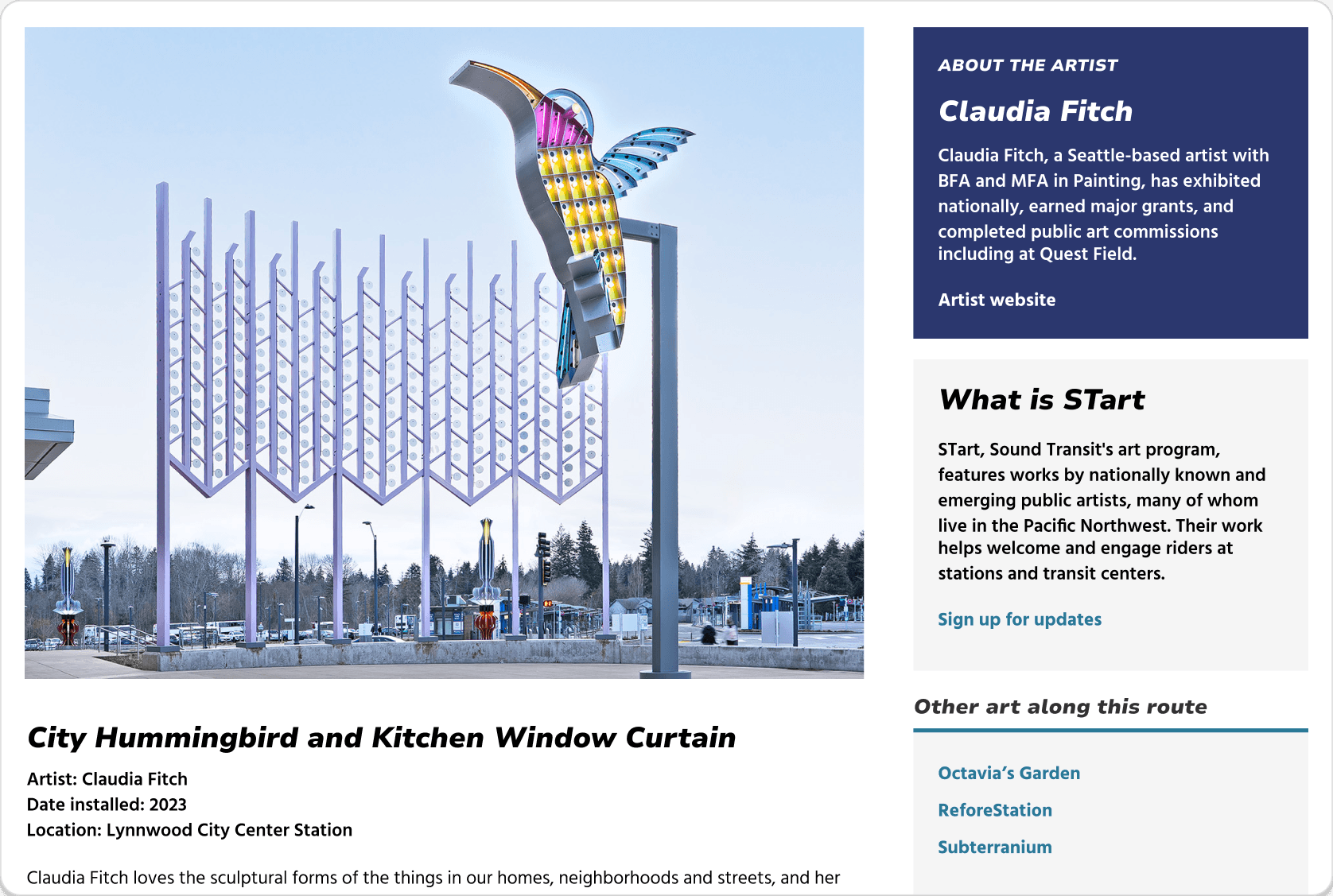 The STart Page is a unique highlight of the Puget Sound transit system. Enhancing the digital presence of the artworks meant impact on daily transit experiences for millions!
